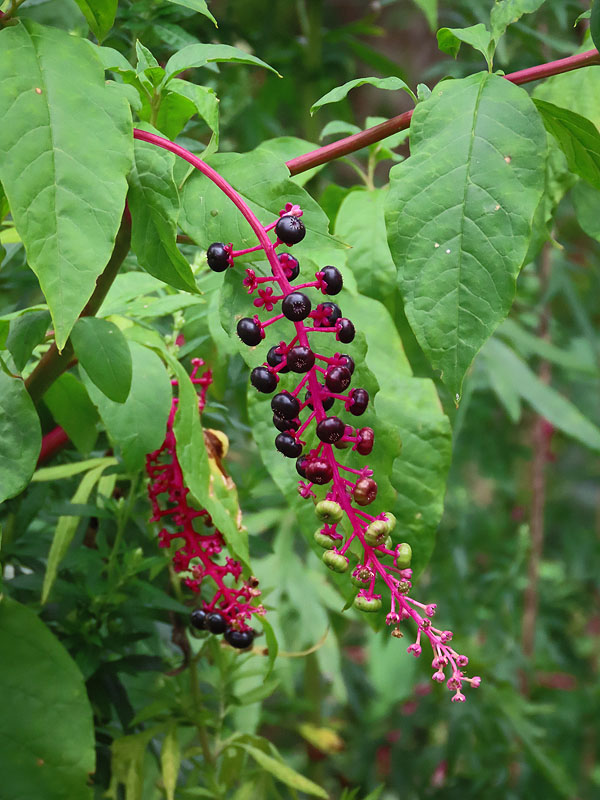 Pokeweed (Phytolacca americana) fruits are ripe.