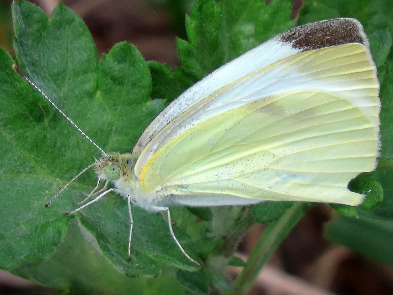 With the body tilted forward and the hindwings tilted up, the false eyes and antennae are thought to divert bird attacks away from the vital body.