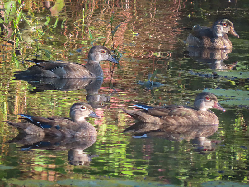 August 30th. Young Wood Ducks (Aix sponsa). Three with red eyes are males.