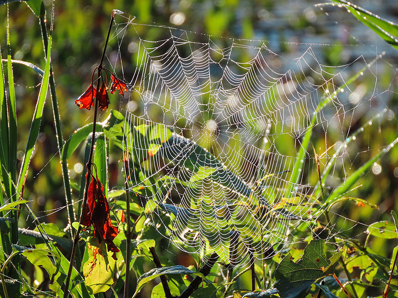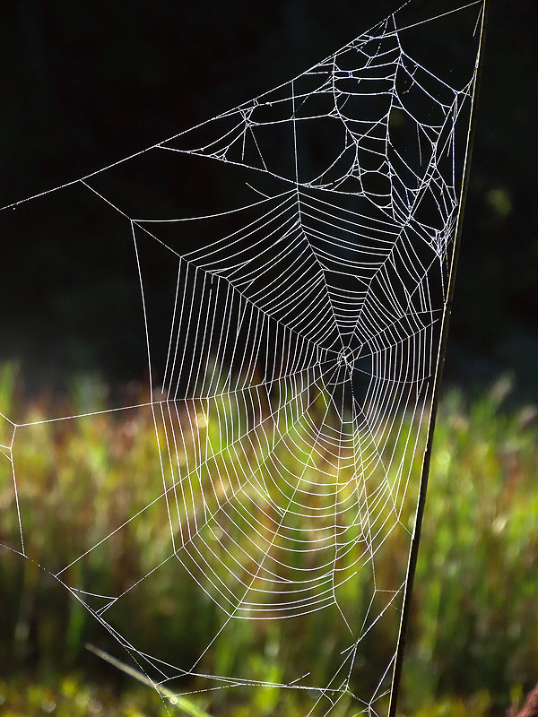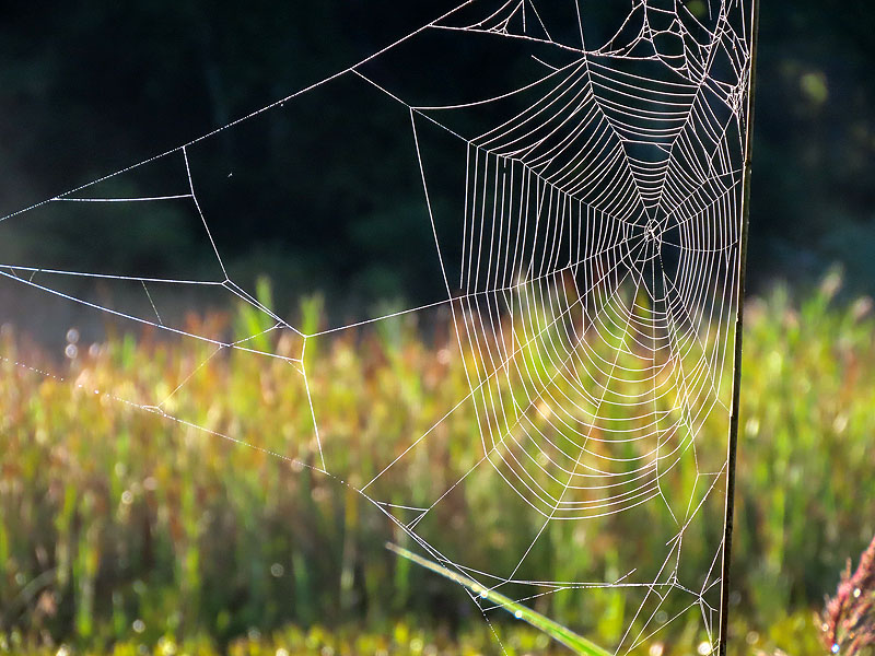 Dew on spiderwebs.