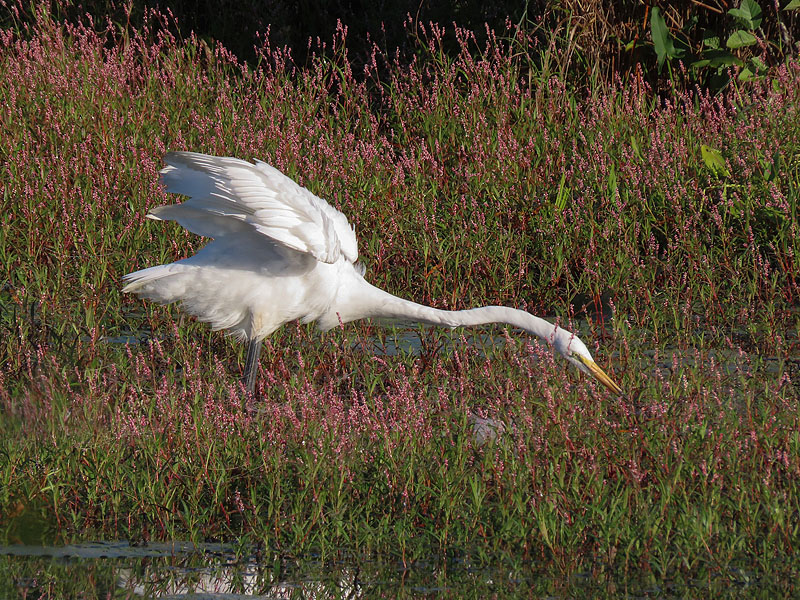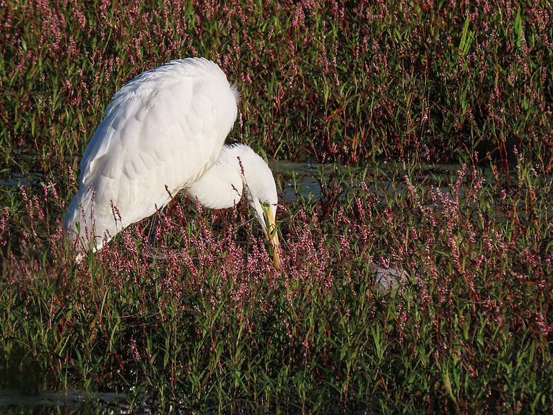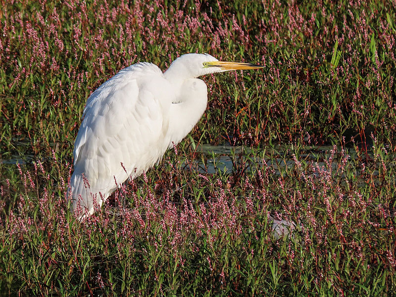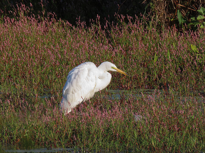 By the way, the bird is hanging out amid Swamp Smartweed (Polygonum coccineum).