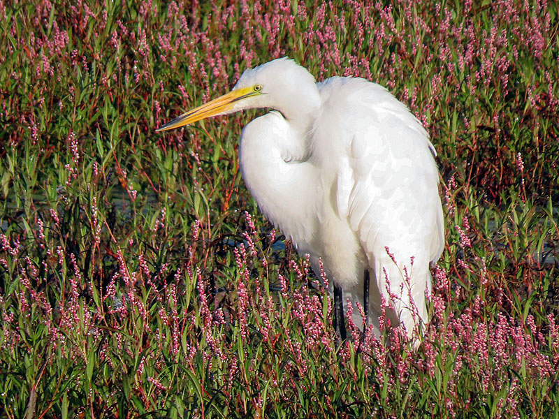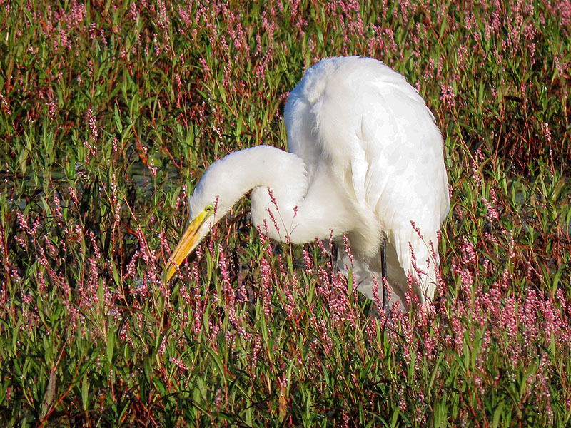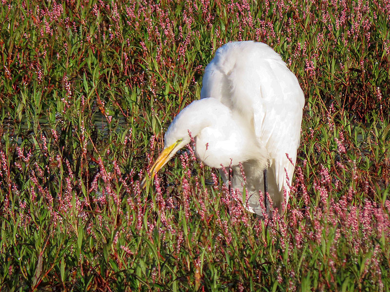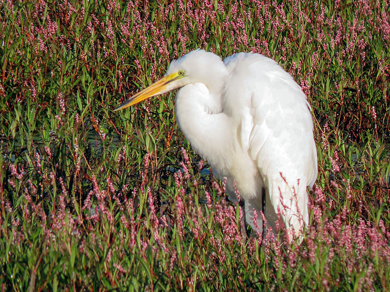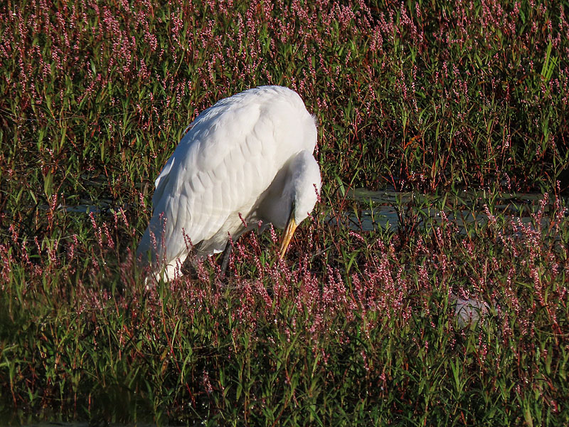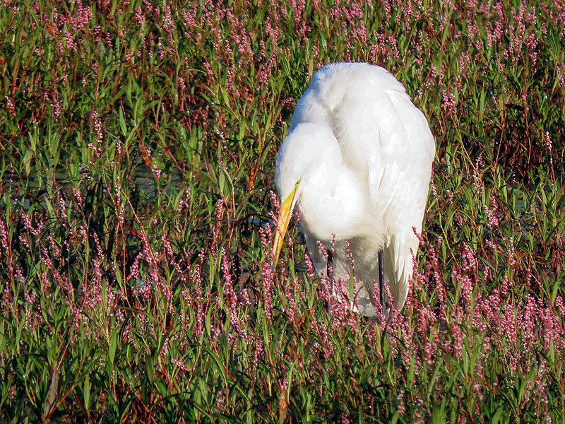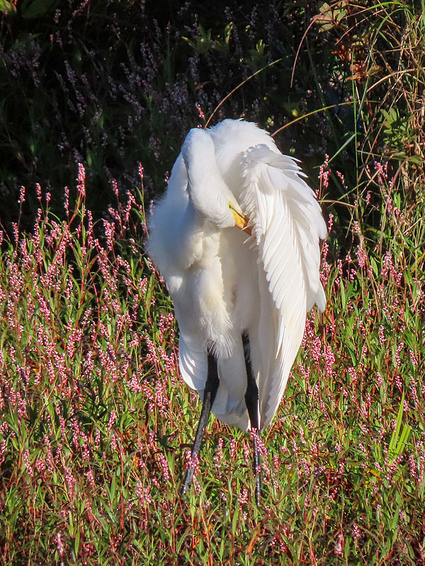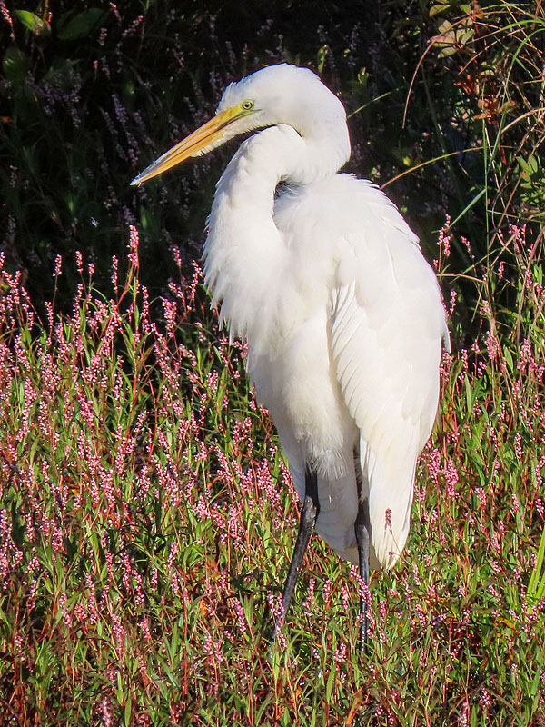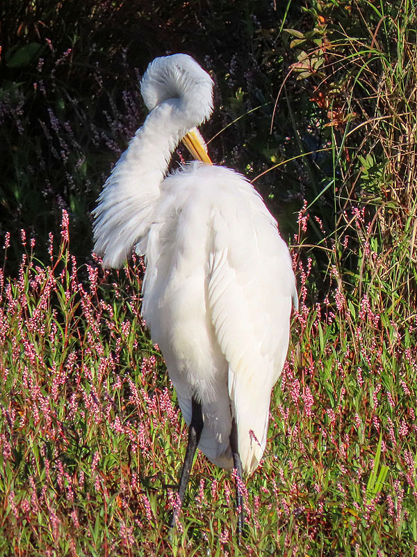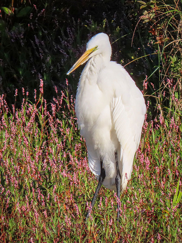 On my walk back, the Great Egret hadn't moved far.