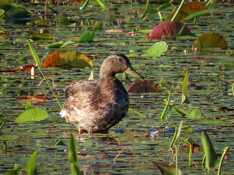 One of several female Mallards (Anas platyrhynchos) far out on the south side of the marsh.