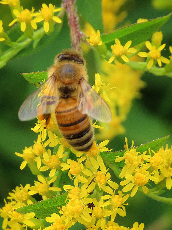 Honey Bee (Apis mellifera) on Goldenrod (Solidago sp.).