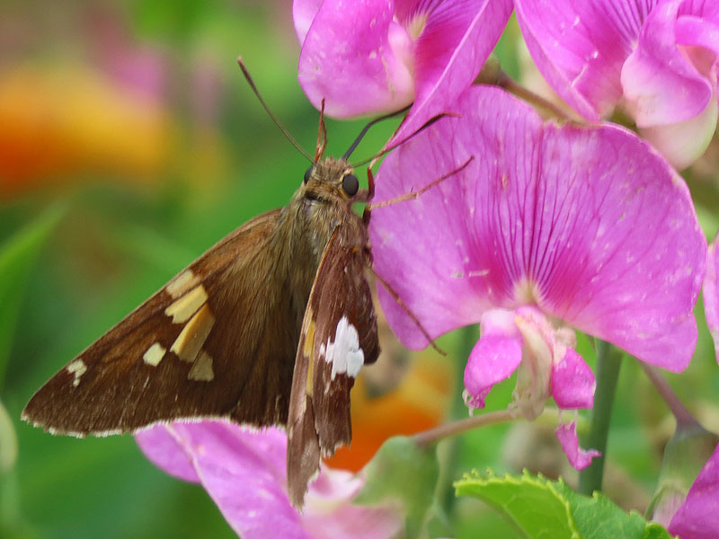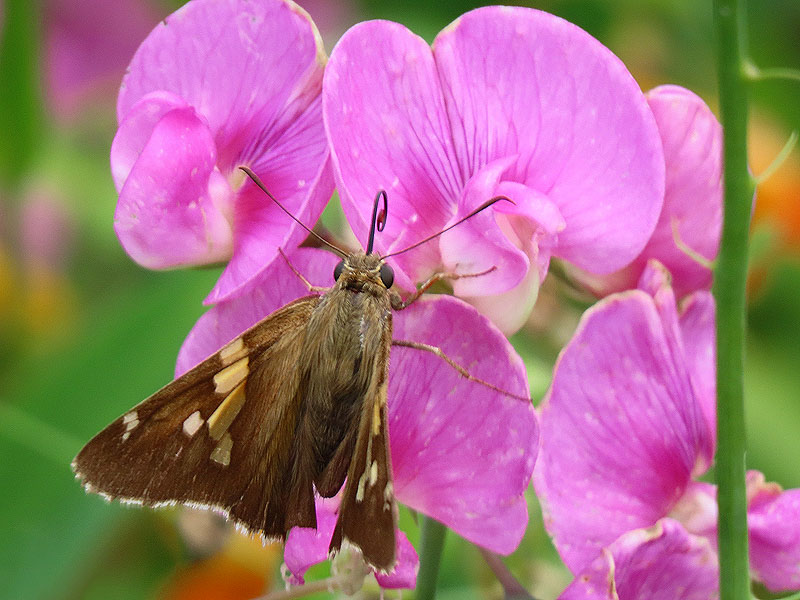 Silver-spotted Skipper (Epargyreus clarus) on Sweet Pea (Lathyrus odoratrus).