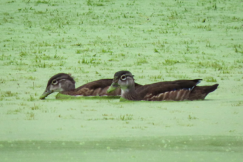 September 7th. Two young Wood Ducks (Aix sponsa) at Cranberry Bog, feeding on Duckweed (Lemna minor).