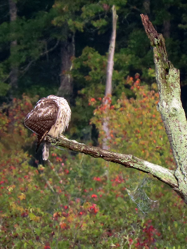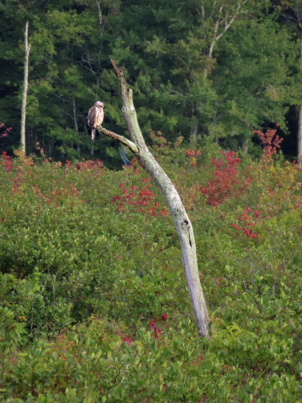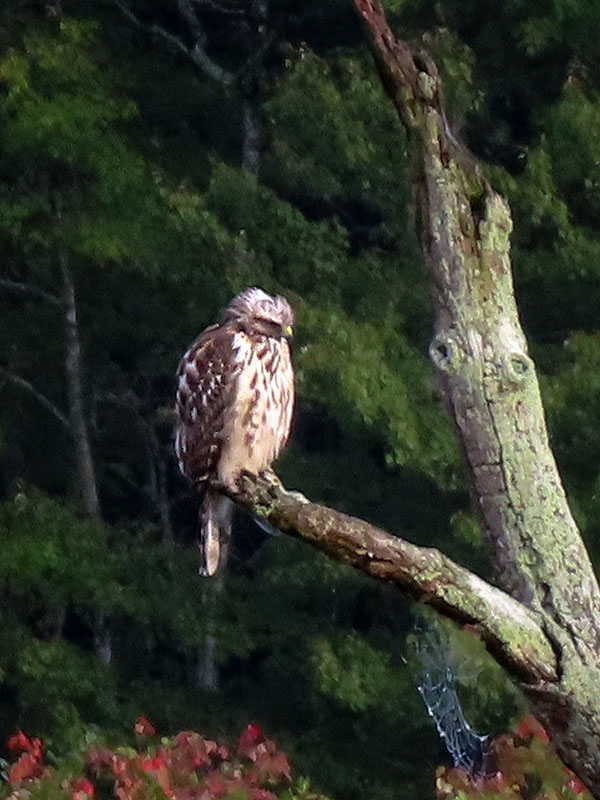 A distant Red-shouldered Hawk (Buteo lineatus).