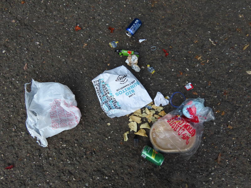 Saturday night's trash left at the Route 85 parking area in Amston. (I cleaned up all but the nachos.)
