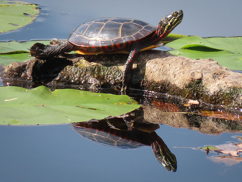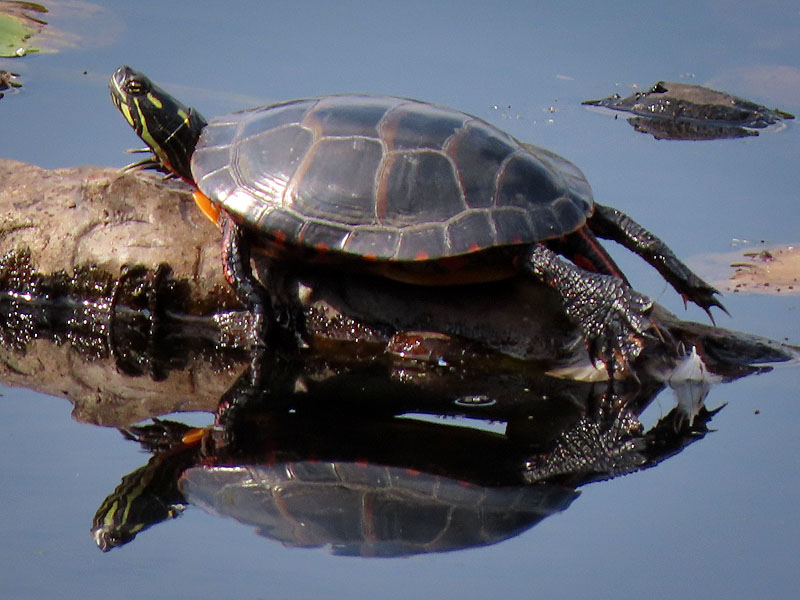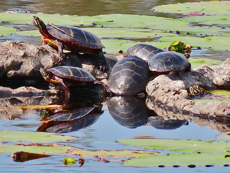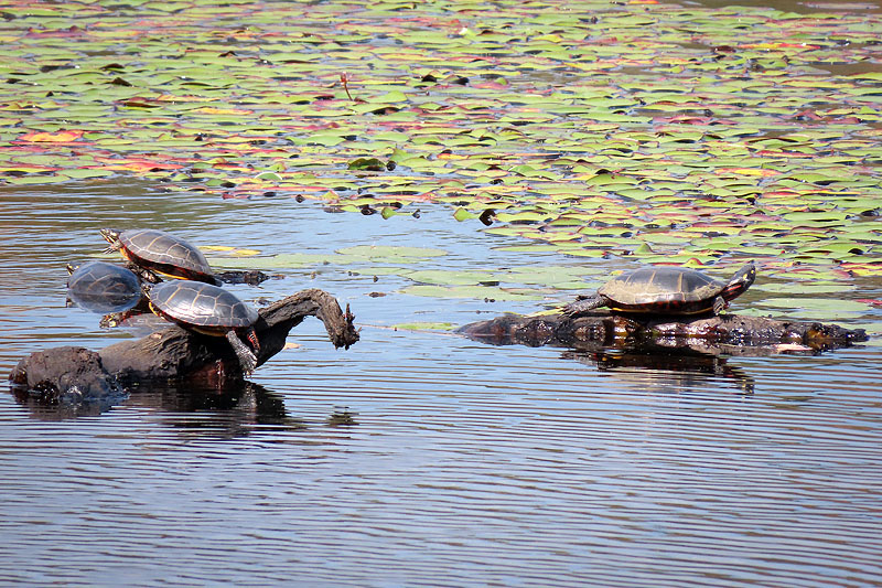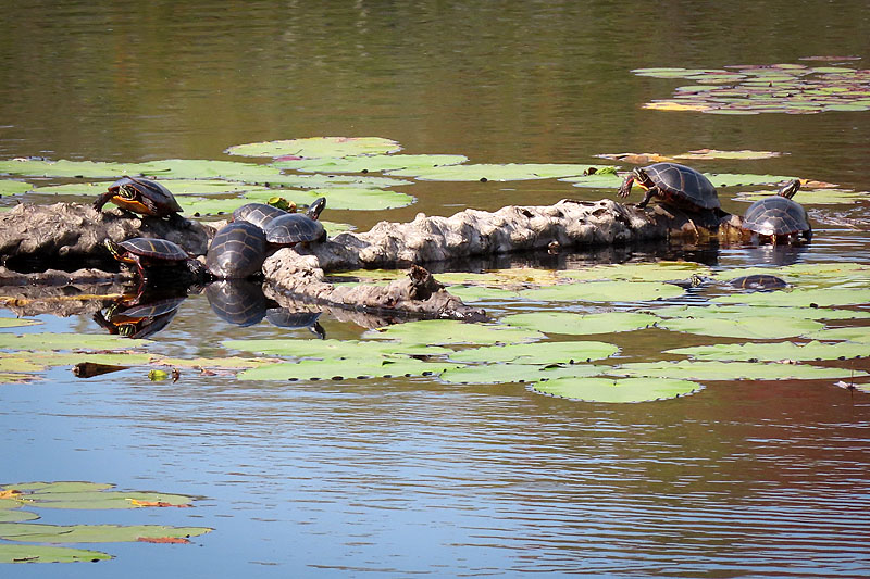Lots of Painted Turtles (Chrysemys picta.) Eight in this photo.