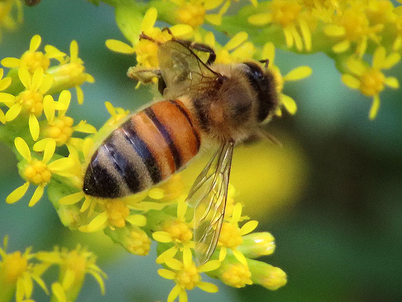 Honey Bee (Apis mellifera) on Goldenrod (Solidago sp.).