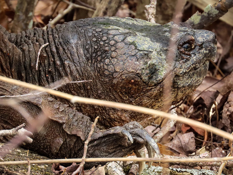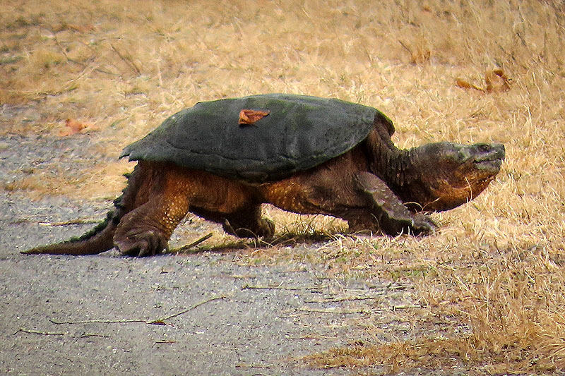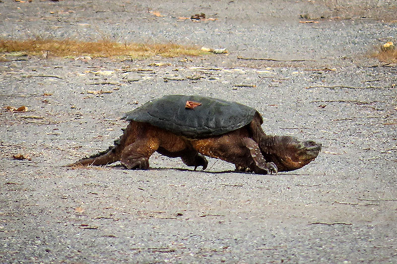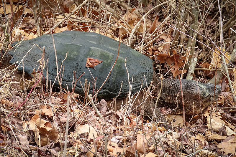 Walking back west, I spotted this Snapping Turtle (Chelydra serpentina) heading across the trail.