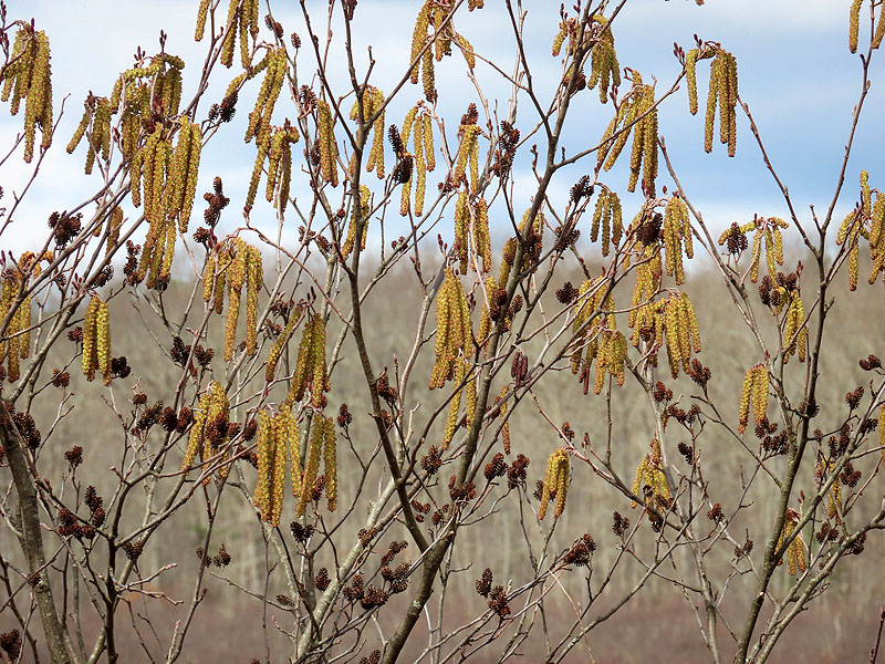 Speckled Alder (Alnus rugosa) catkins and female cones.