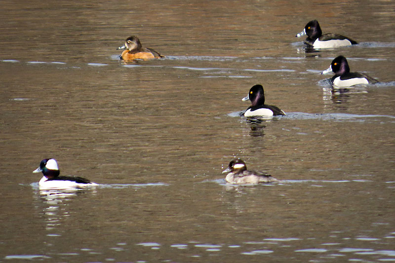 The Buffleheads, plus four Ring-necked Ducks (Aythya collaris).