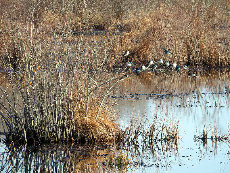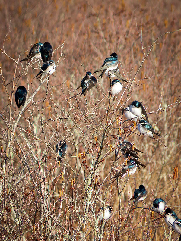 The Tree Swallows (Tachycineta bicolor) are back in force. (I'd been seeing small numbers, never landing, for a few daya).