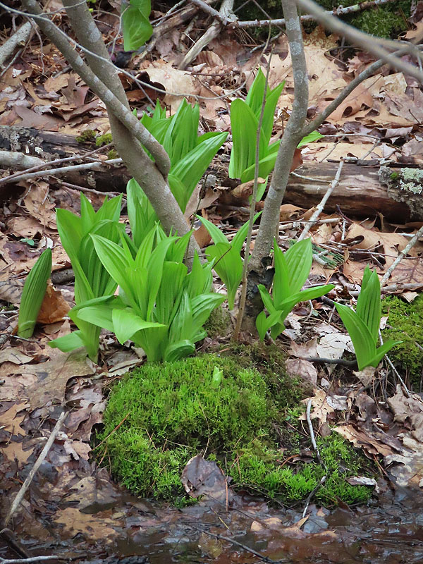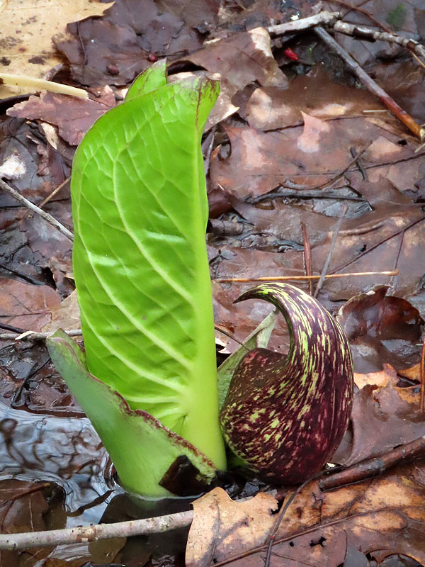 Skunk Cabbage (Symplocarpus foetidus) is leafing out.