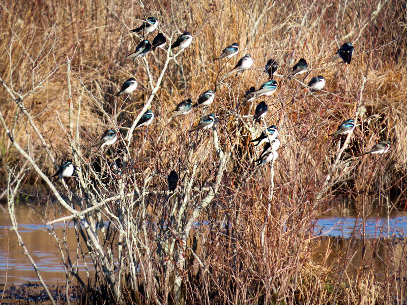 April 8th. The Tree Swallows (Tachycineta bicolor) hanging out together, taking a break from midge hunting.