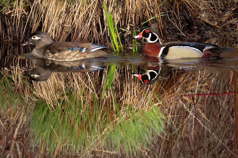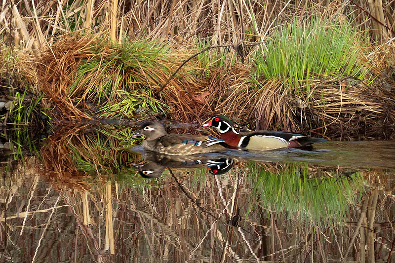 A pair of Wood Ducks (Aix sponsa) down by the second (westward) beaver dam.