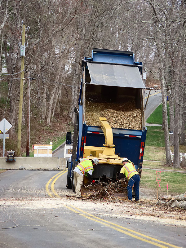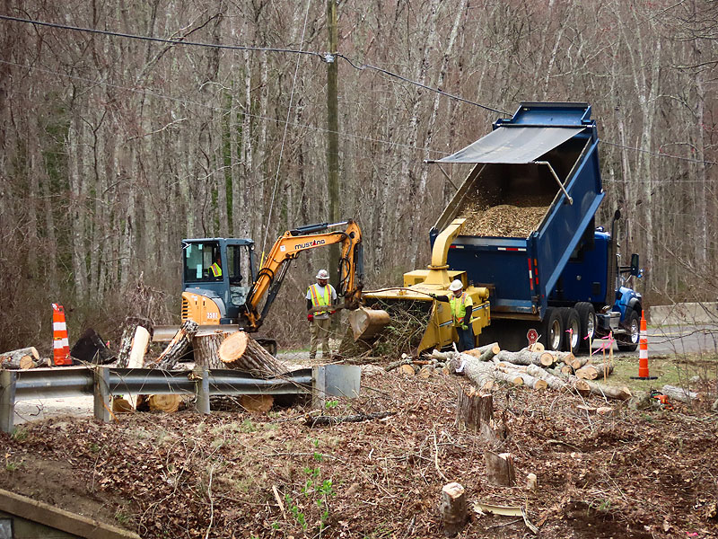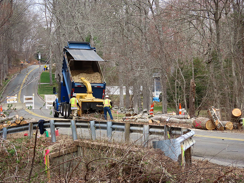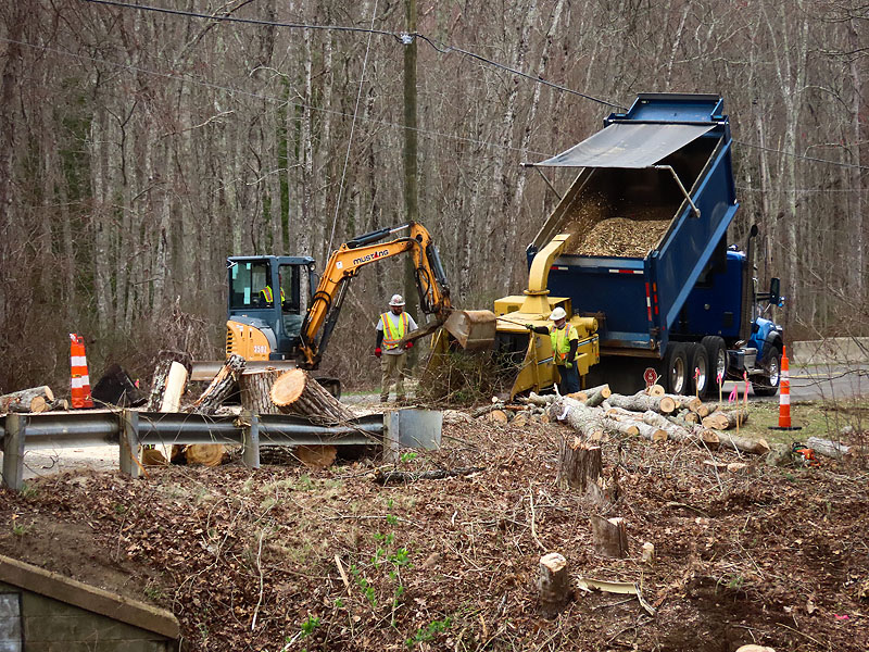Back mid afternoon and trees are down and brush is being chipped.