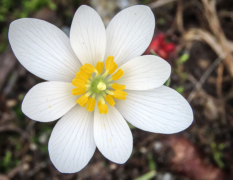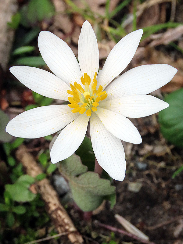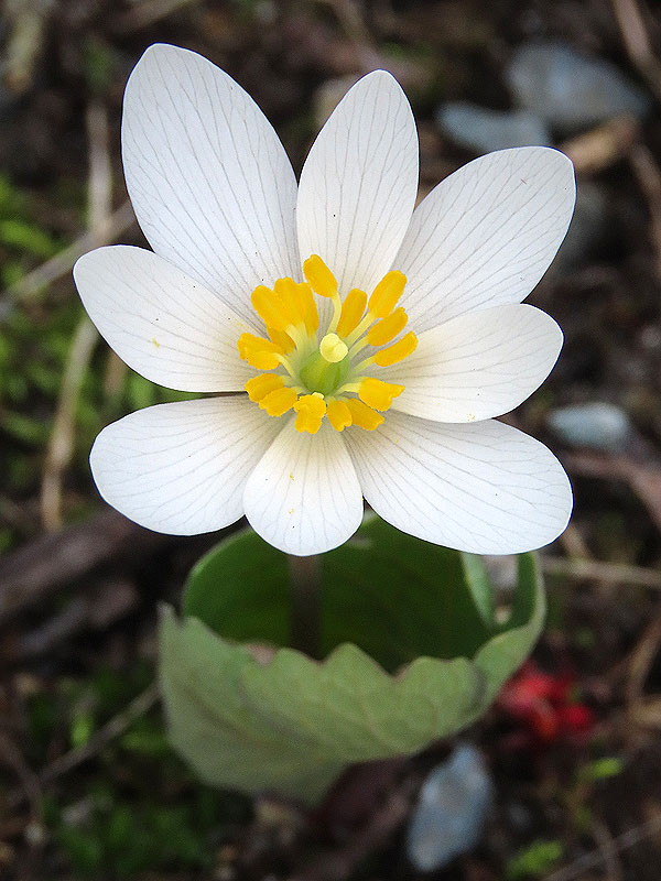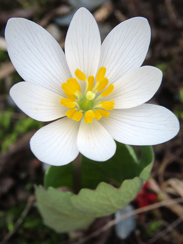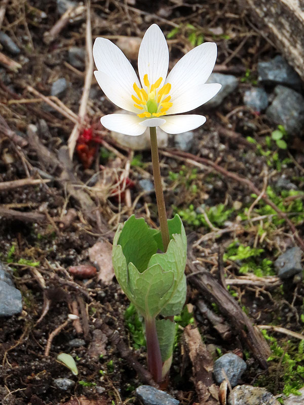 West of Old Colchester Road, down towards Grayville Road, Bloodroot (Sanguinaria canadensis) is blooming.