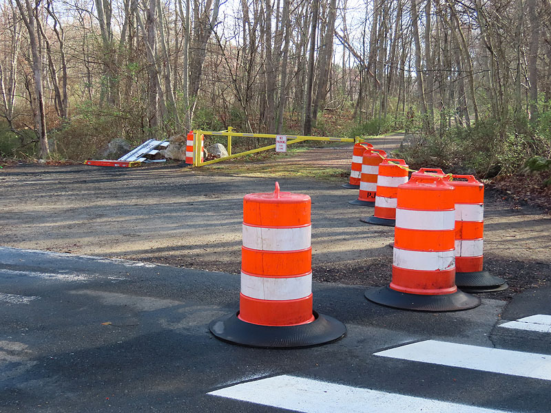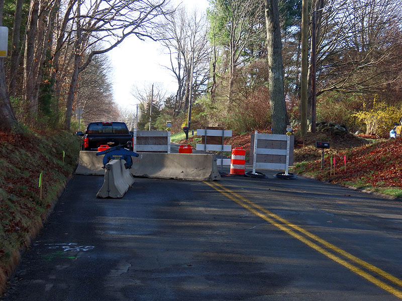 Looking south, the road is completely blocked off.