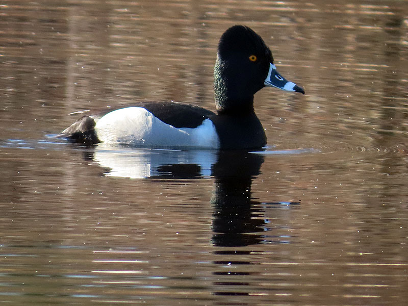 Male of a single pair of Ring-necked Ducks (Aythya collaris) at the marsh.