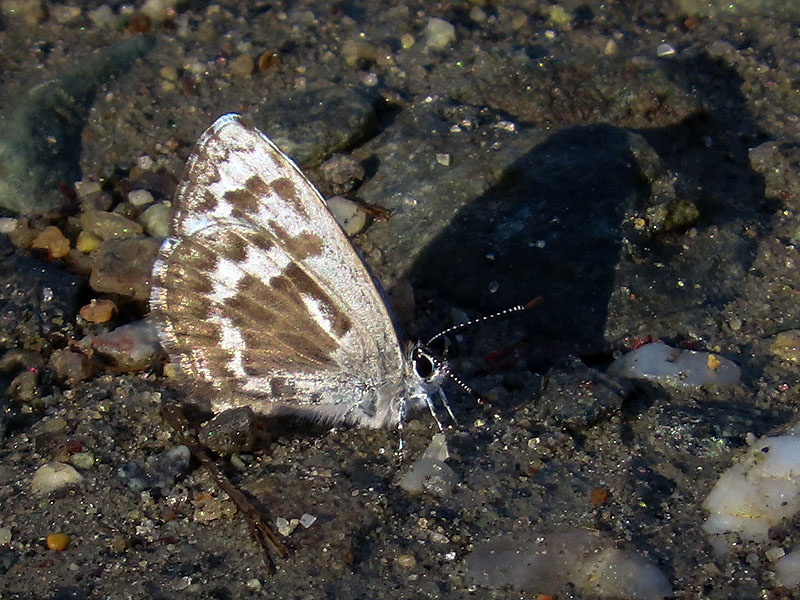A Spring Azure butterfly (Celastrina sp.). At rest, they hide the sky blue upper wing surfces.
