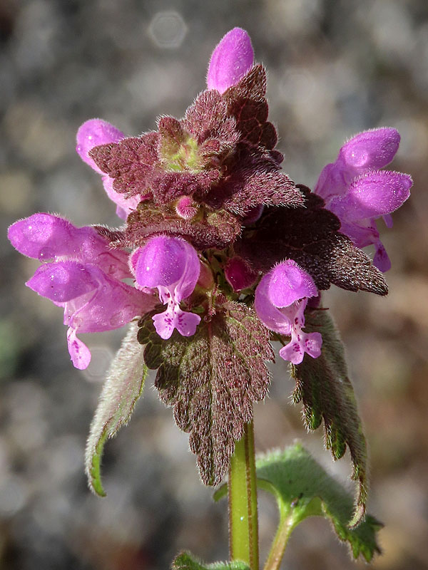 Purple Dead-nettle (Lamium purpureum), a mint. Close up, it smells like corn-on-the-cob.