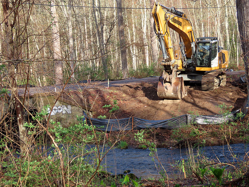 Guard rails are completely gone and embankments are being shaped.