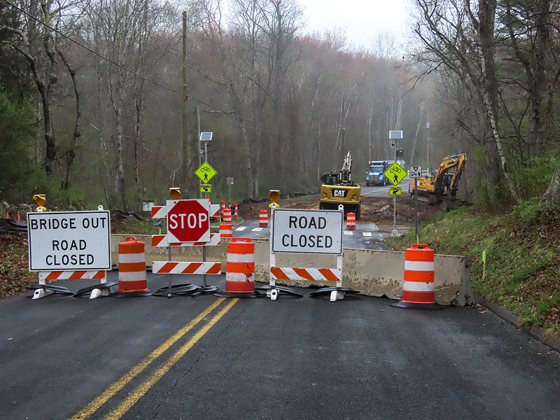 April 19th, a Sunday, I approached the bridge construction from the south on Old Colchester Road, stopping at the barricade.