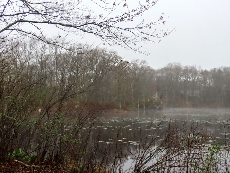 Next stop, the pond east of Route 207. See those two dark specs in the trees near the photo's center?