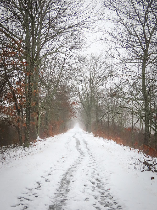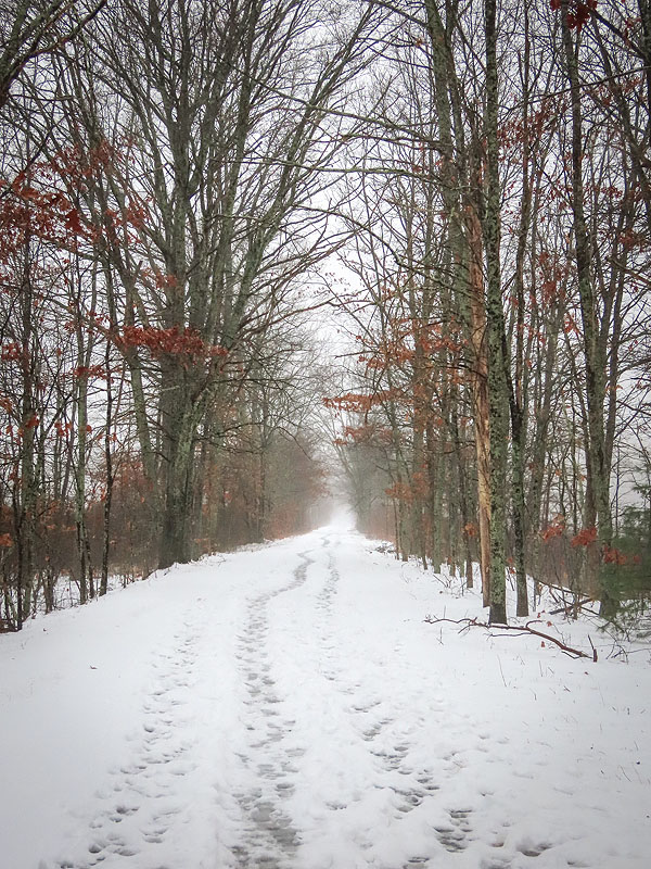 December 29th. Six inches or so of snow overnight between the 26th and 27th. Warm enough for melting today so slushy.
