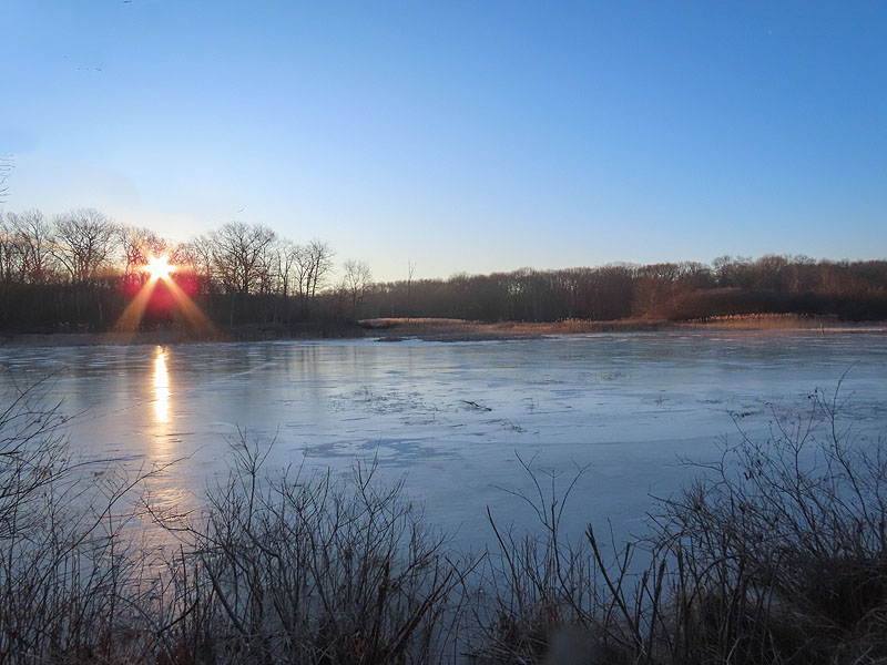 A brief stop at Norton's pond. The orange sand/clay surface of the trail was a thawed mess.