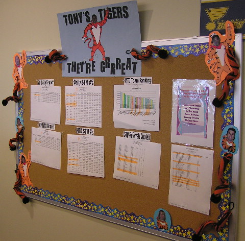 sales team sits together, and has a name/theme, a team leader,