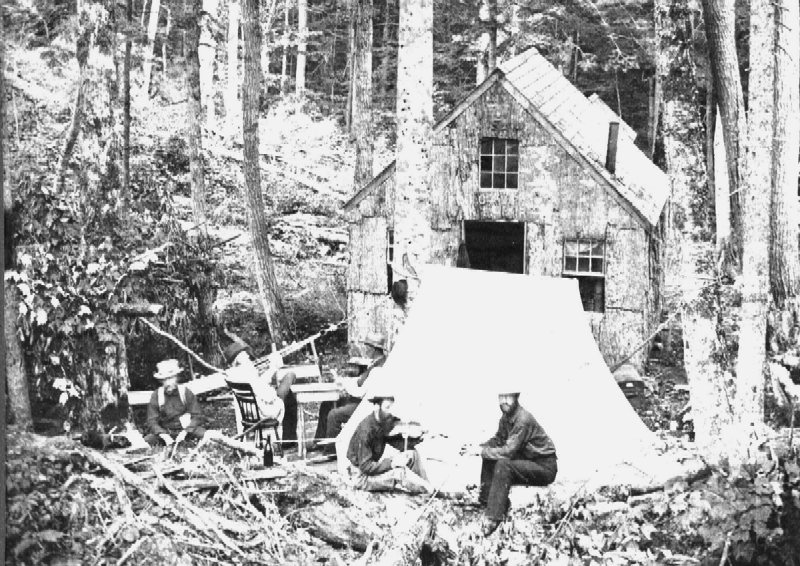 North Waterford, Maine: Camp Kezar These photos show "Camp Kezar" which I believe was the summer camp home of the Greenes of North Waterford. An old map of Watrerford shows the location of the camp near the Lovell Road, not far from the homesite of George Frye Greene. Note the rough bark siding. In the first picture, I can just make out the words Camp Kezar above the doorway. This picture seems to be taken while the camp was under construction, perhaps just as it was being completed. I do not recognize anyone. The second picture was taken when the camp was in use. I recognize several articles of furniture that were passed down through the family. More importantly, towards the left I recognize my great granduncle, Dr. William Warren Greene, his wife, and (blurry, but recognizable to me) their son, Charles Lyman Greene. I'm uncertain who else is pictured. If anyone can tell me more about Camp Kezar, I'd be very grateful. Please contact me at stan@performance-vision.com |